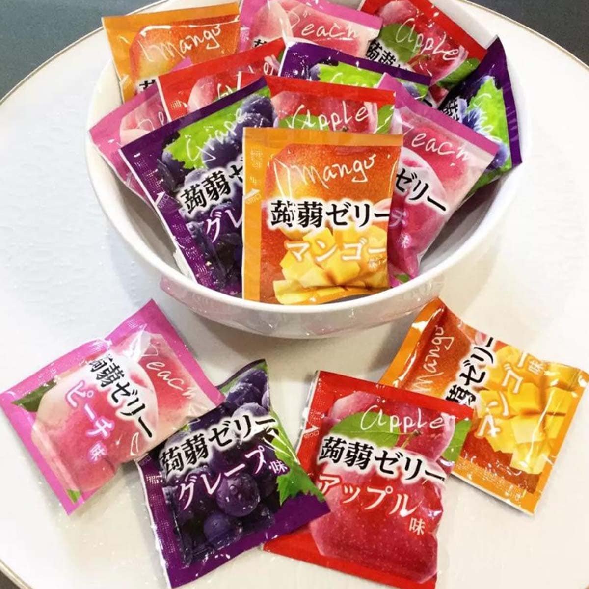 日本直送水果果凍拼盤,一盒包含蘋果、芒果、葡萄、桃子四款口味,每顆果凍Q彈爽滑,酸甜清爽,無論大人細路都一定鍾意! ✨ 產品亮點