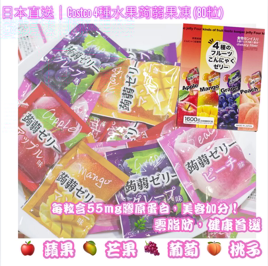 日本代購Round 1 大阪 Costco代購 預訂 🔗歡迎網站落單買兩件更優惠 日本直送 Costco 4種水果蒟蒻果凍 啫喱 (80粒) 🍇🍑🍎🥭 一次滿足四種水果滋味!