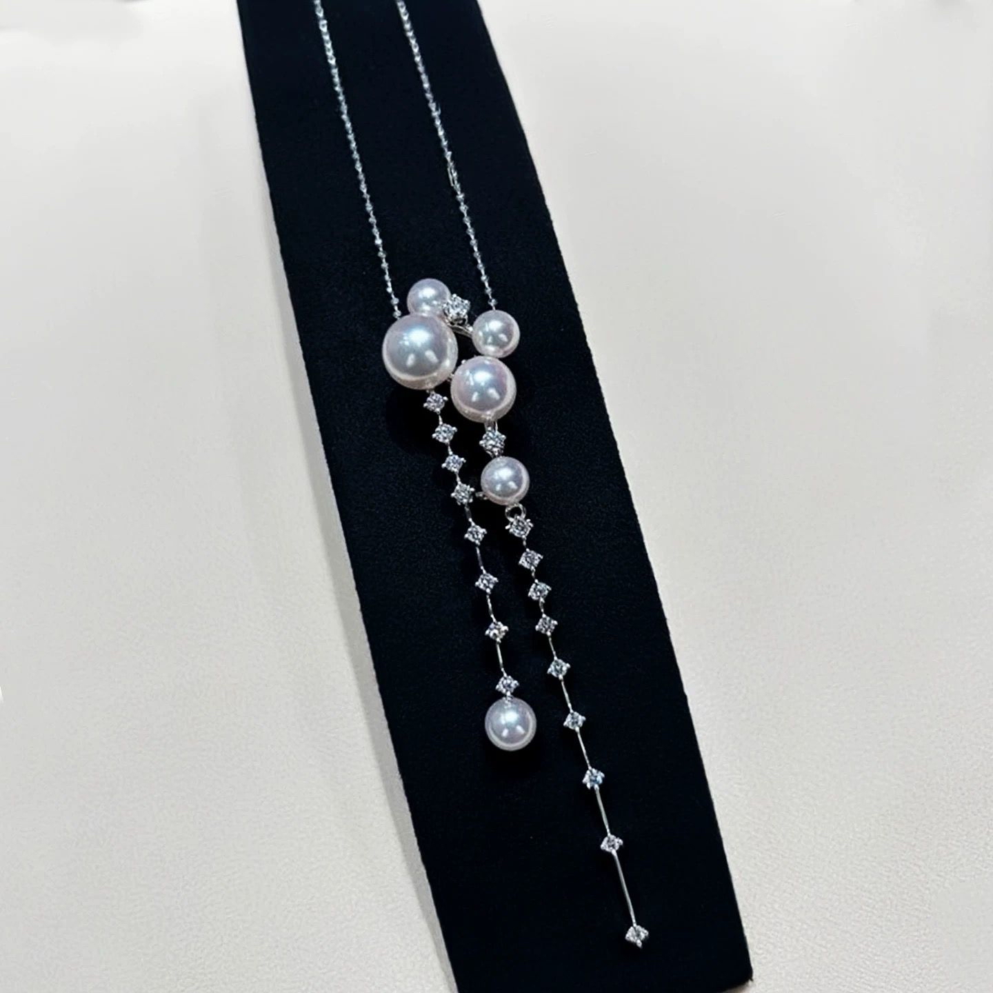 璀璨星河流蘇吊墜項鍊 4-7mm天然高品質淡水珍珠,14k注金銀色系列